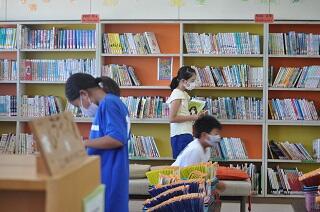 夏休み明けだったので、今日の図書室は、本の返却と新しく借りるために大勢の子どもたちが来館していました。高学年は、授業の一部を利用していました。写真は、2校時終わりごろの図書室の様子です。