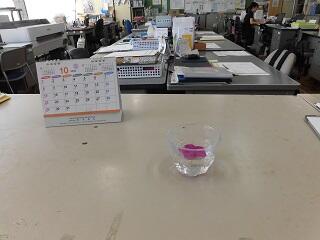朝から園芸委員会の児童は朝から校庭の花壇の花へ水かけ等を頑張っています。今日、園芸委員会の6年生が職員室に水中花のプレゼントをしてくれました。職員室の職員は、児童の心の優しさと花の美しさに心が癒やされています。