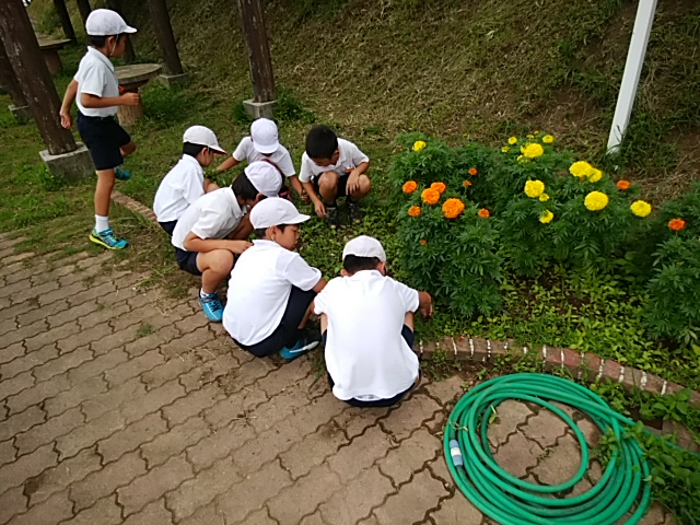 6月18日(日)5年生が育てているサルビアが成長しつつあります。休みでも交代で水をかけています。
