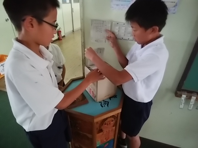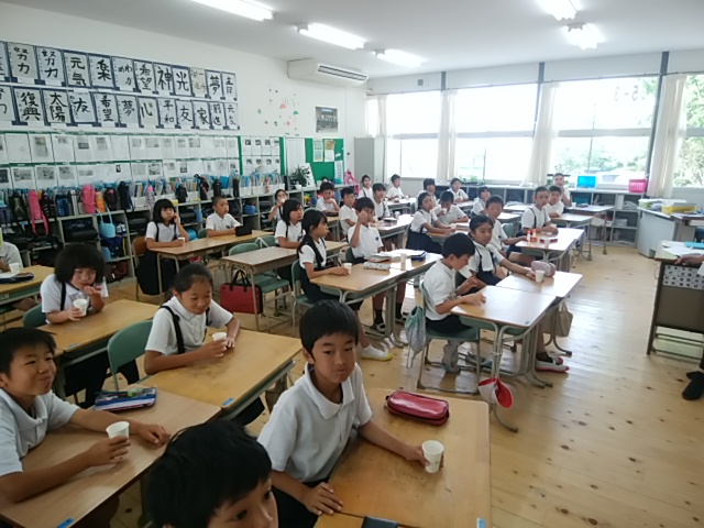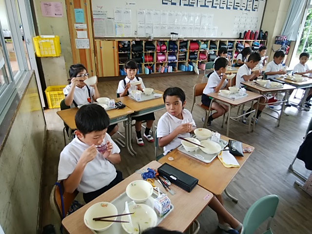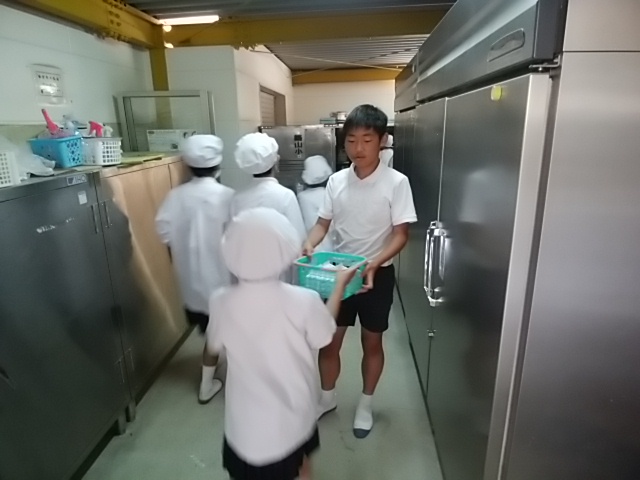 6月14日(水)給食の時間、給食委員会の子どもたちは、下級生の牛乳を取ってあげたりよくがんばっていました。