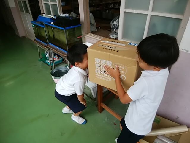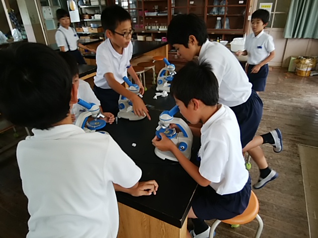 6月21日(水)5年生の理科では、顕微鏡の使い方を学習しています。昼休みに男子数人が顕微鏡を使って水中の微生物の観察をしていました。