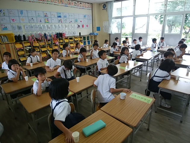 6月23日(金)朝からぷくぷくタイム(フッ化物洗口)に取り組みました。1年生も上手にうがいしていました。