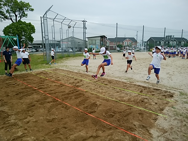 6月22日(木)ハッスルマッスル(業間全校体育)がありました。それぞれの学年で幅跳びや長縄跳びに取り組みました。