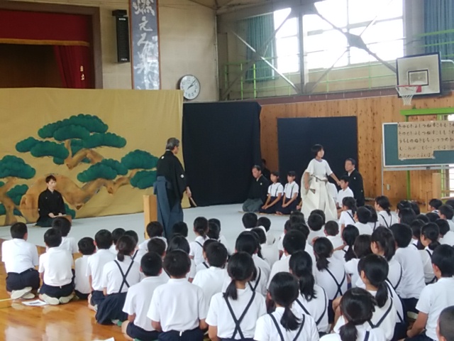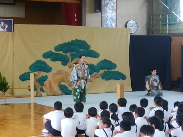6月19日(月)芸術体験教室で能楽の幻術鑑賞会がありました。能や狂言が行われたり、子どもたちの代表が演じたり、すばらしい芸術鑑賞会になりました。
