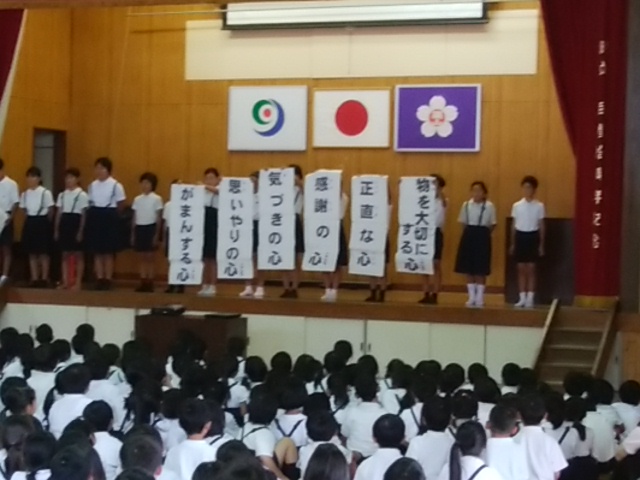 6月15日(木)なかよし集会がありました。校長先生から「心のきずなを深める月間」の取組の一環として、お話がありました。