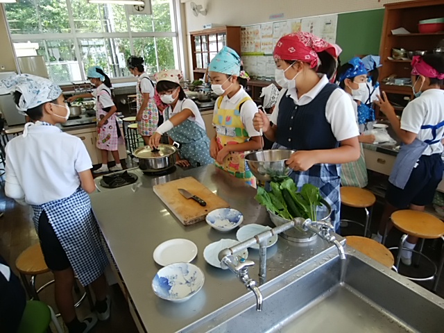 6月13日(火)6年生が、家庭科室で調理実習をしていました。よくがんばっていました。