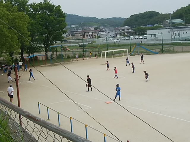 6月10日(土)子ども会のソフトボール大会に向けて、運動場で練習をしていました。