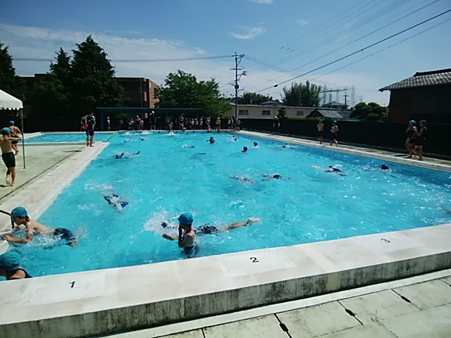 6月9日(金)プール開きがありました。5時間目に5年生が泳いでいました。気温が上がったので、気持ちよさそうでした。