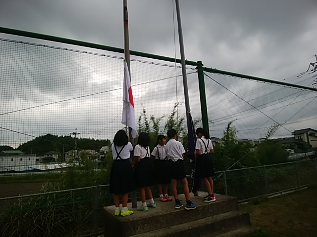6月8日(木)築山小では、朝から企画委員の子どもたちが、国旗と校旗を揚げています。