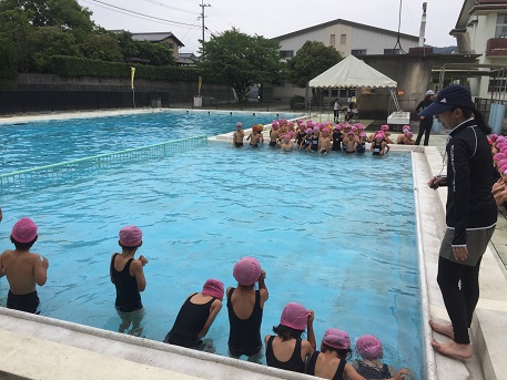 6月6日(火)プール開きがありました。まだ水が冷たかったですが、元気よく泳ぎました。