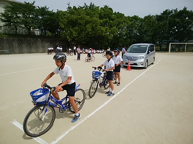 6月2日(金)交通教室(3年、4年)がありました。安全な自転車の乗り方を練習しました。