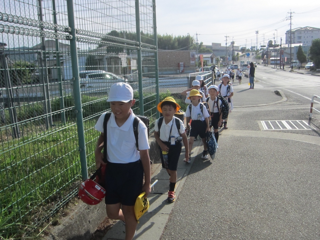 6月5日(月)朝の登校の様子です。1列にきちんと並んできている登校班が多かったです。