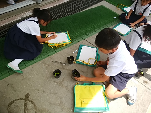6月2日(金)3年生が理科の時間にホウセンカやひまわりの子葉を観察しました。