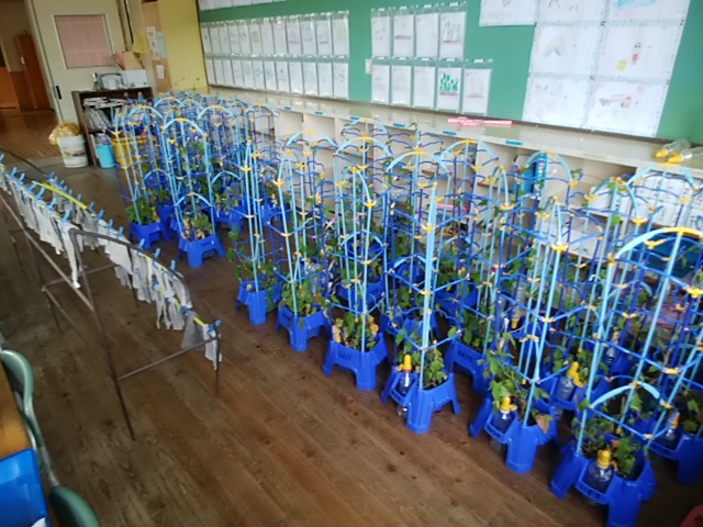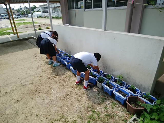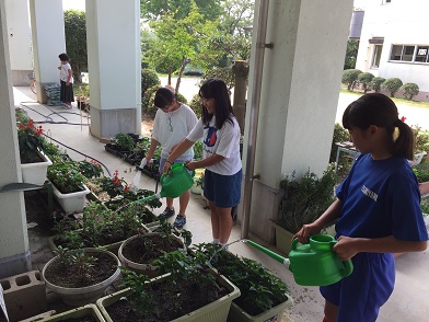 7月3日(月)台風に備えて、植木鉢などを教室に片付けました。