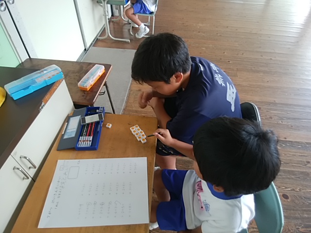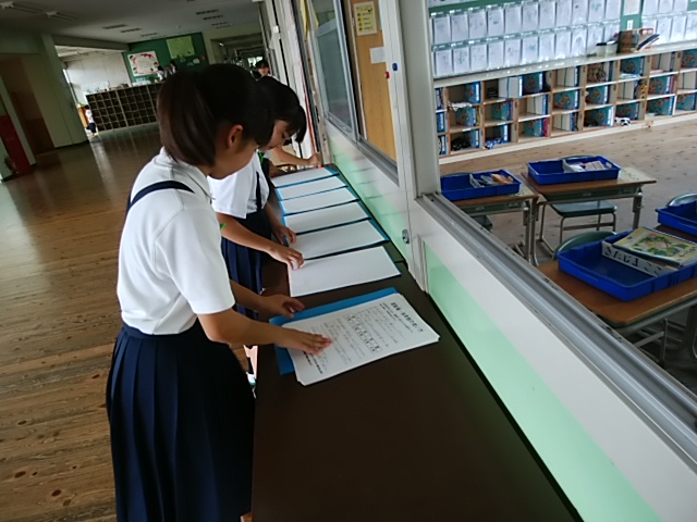 7月13日(木)職場体験に来ている玉中生が朝から〇付けしたり、勉強を教えたり、がんばっていました。