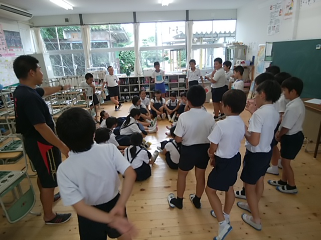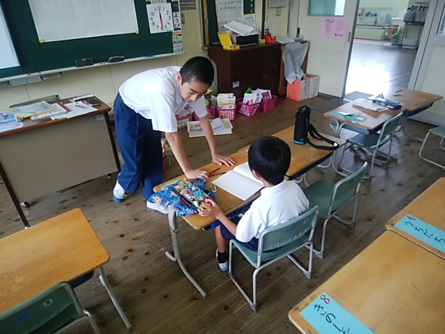 7月4日(火)台風で昼休みは遊べなかったので、一緒にゲームをして楽しんでいるクラスがありました。