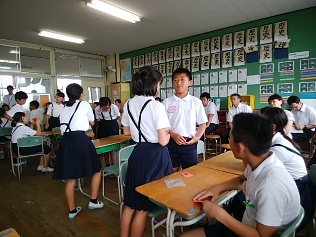7月10日(月)外国語活動の研究授業が6年生でありました。6年生が楽しそうに英語でコミュニケーションをとっていました。