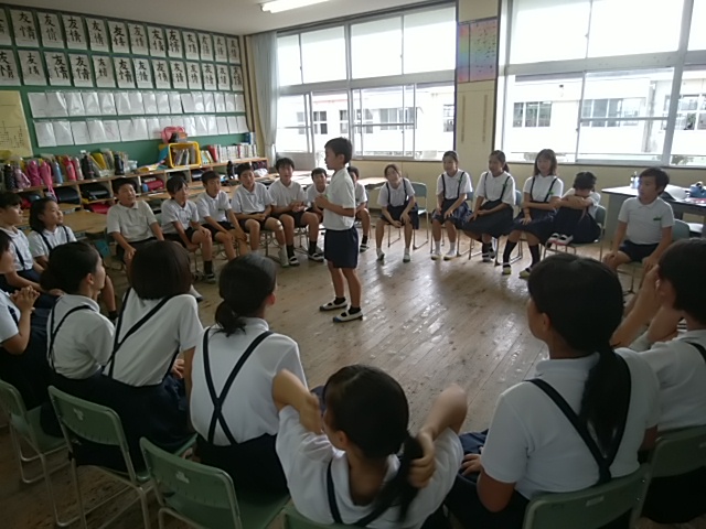 ◆6年生の教室では全員でフルーツバスケットで遊んでいました。