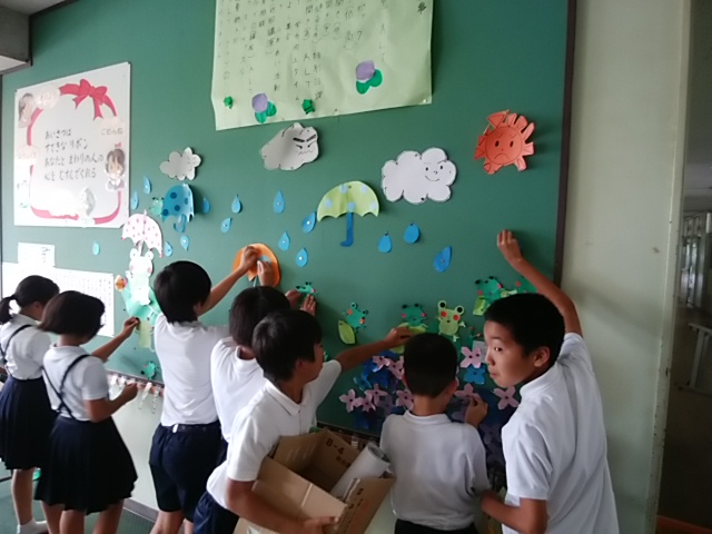 7月4日(火)台風で遅れて登校しました。風雨が強かったですが、学校は被害はありませんでした。