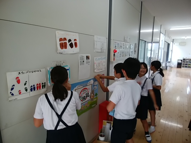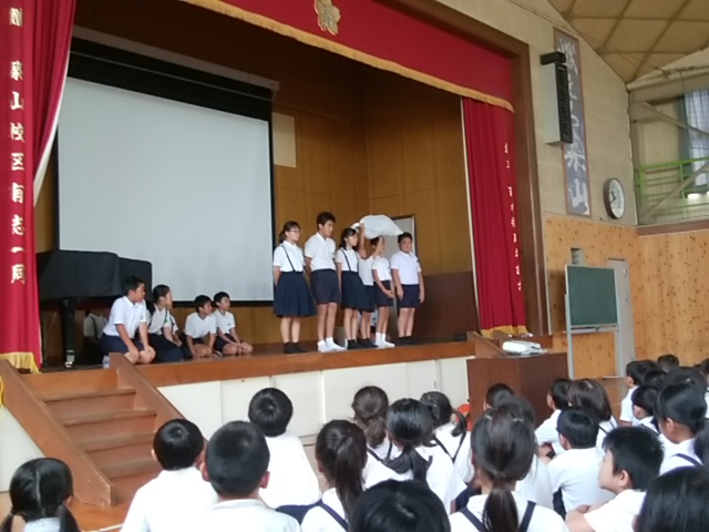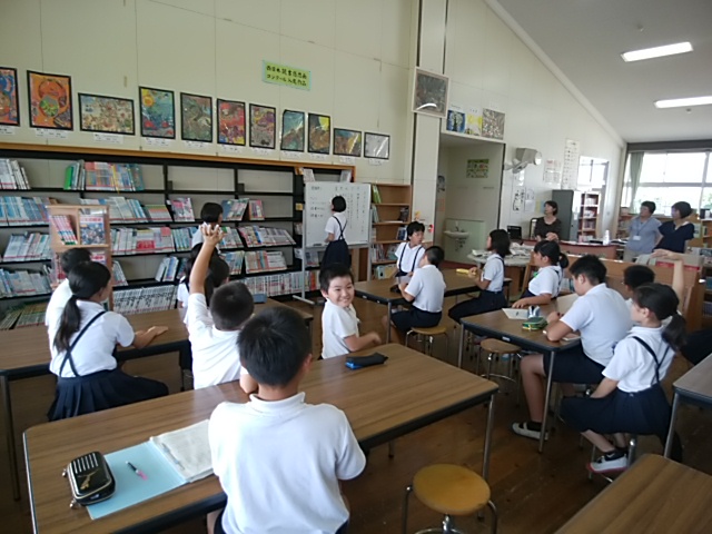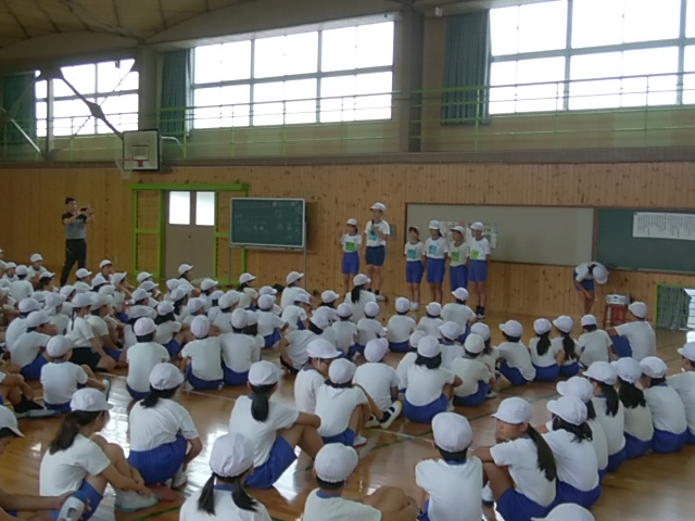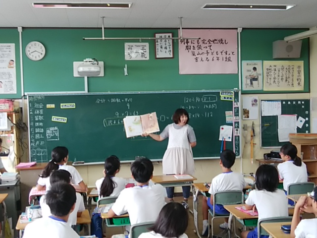 築山小の出来事9月 投稿日時 : 2017/10/02 学校サイト管理者 9月30日(土)サッカーのJAたまなカップ2部に5年生が参加しました。最後までよくがんばっていました。9月29日(金)放課後、器楽部の子どもたちが、コンクールに向けて練習をがんばっていました。9月29日(金)放課後、陸上記録会の選考会がありました。がんばっていました。9月29日(金)昼休みに、3年生が彼岸花を自主的にスケッチしていました。9月29日(金)金曜日の朝は、フッ化物洗口(ぷくぷくタイム)を全校で取り組んでいます。きっと、虫歯が少なくなると思います。9月28日(木)陸上記録会の第2回選考会がありました。選手目指してがんばっていました。9月28日(木)毎週木曜日は読み聞かせの日です。いつもありがとうございます。9月27日(水)委員会活動がありました。掲示委員会が掲示物の張り替え、清掃美化委員会が、掃除道具の修理、をそれぞれがんばっていました。9月27日(水)給食の放送は、読み聞かせでした。放送委員ががんばって読んでいました。9月27日(水)ALTのコール先生の授業がありました。給食は3年生と一緒に食べました。9月26日(火)放課後、陸上記録会の種目選考会が3日間の予定で始まりました。9月25日(月)赤い彼岸花が運動場西側のプレハブ側にきれいに咲いていました。銀杏が色づいてきました。9月23日(土)サッカーリーグに4年生が参加しました。9月22日(金)4年生が、玉名学探求の時間に「福祉体験」をしました。社会福祉連絡協議会より職員の方に来ていただき、体験活動を行いました。9月22日(金)朝から、図書室が大混雑していました。金曜日で、雨が降っているからかもしれません。図書委員ががんばっていました。9月21日(木)昼休みに、体育委員会主催のドッヂボール大会5年の部がありました。クラス対抗で、盛り上がっていました。9月21日(木)木曜日の朝は、ボランティアによる読み聞かせです。6年生がしっかり話を聞いていました。9月20日(水)水曜日の給食の放送は、読み聞かせです。放送委員が本を選んで上手に読んでくれています。9月19日(火)県立教育センターの理科実験講座がありました。荒尾玉名の理科の先生方が集まって、理科実験の研修を受けました。大変有意義でした。9月15日(金)ふれあい活動がありました。縦割り(運動会の応援団)で楽しく活動しました。9月15日(金)ALTのコール先生の授業がありました。1年生が楽しく英語を学習しました。9月15日(金)朝からぷくぷくタイムとして、フッ化物洗口のうがいをしました。9月14日(木)読み聞かせがありました。いつも築山小のためにありがとうございます。9月13日(水)クラブ活動がありました。楽しそうに活動していました。9月12日(火)1年生もすっかり学校に慣れ、おぼん洗いも上手にできるようになりました。9月11日(月)研究授業の後、放課後に職員x全員で授業について話し合いをし、よりよい授業作りに努めました。9月11日(月)5時間目に、1の3で研究授業がありました。学活で話し合い活動でした。9月9日(土)サッカーのリーグ戦があり、6年生が参加しました。暑い中よくがんばっていました。9月8日(金)昼休みの様子です。天気がよかったので、外で遊ぶ子どもが多かったです。9月8日(金)ALTのコール先生の授業がありました。給食は4の1で子どもたちと一緒に食べました。9月7日(木)なかよし集会がありました。体育委員会と環境ISO委員会の発表でした。<体育委員会><環境ISO委員会>9月7日(木)2年生で、朝から読み聞かせがありました。楽しいお話をしっかり聞きました。9月6日(水)委員会活動がありました。それぞれがんばっていました。<環境ISO>紙のリサイクルをしました。<図書>今後の活動の話し合いをしました。<放送>給食の放送の企画を考えました。<園芸飼育>草花のお世話をしました。<掲示>掲示物の張り替えをしました。9月6日(水)新しいALTの先生のあいさつがありました。アメリカのテキサス州からいらっしゃいました。9月5日(火)朝から雨で、傘をさしての登校でした。9月4日(月)帰りに1年生が元気よく「さよなら」のあいさつをしていました。9月1日(金)高学年の水泳大会がありました。特にリレーをがんばっていました。 {{options.likeCount}} {{options.likeCount}}