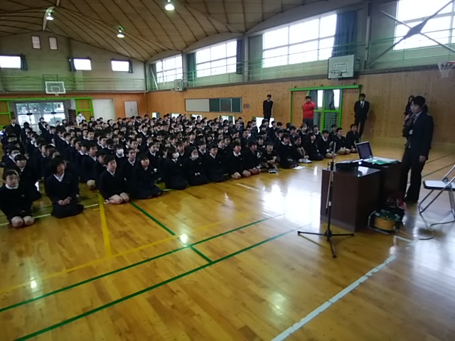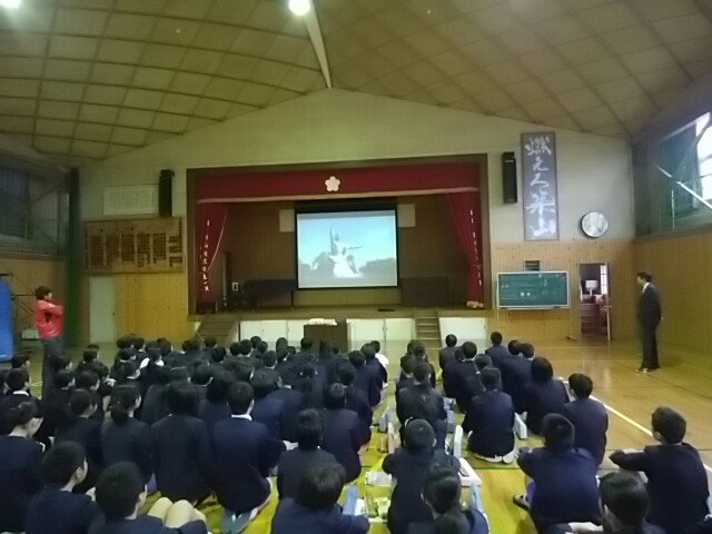 授業参観後の中学校説明会の後に、保護者向けに上映します。