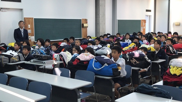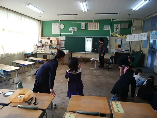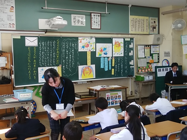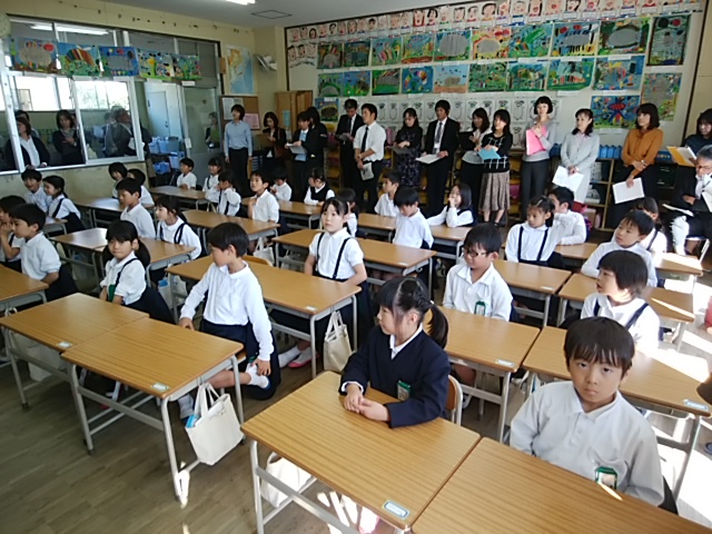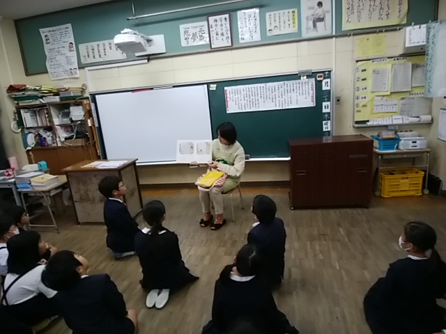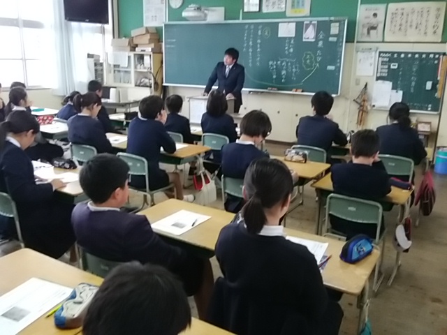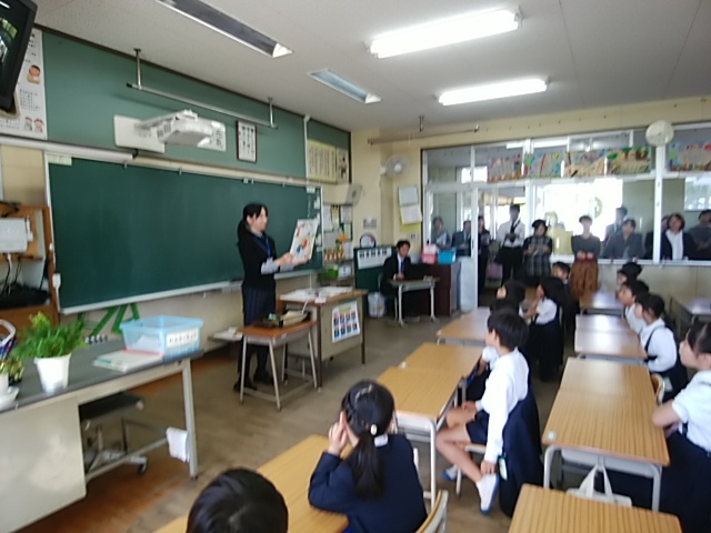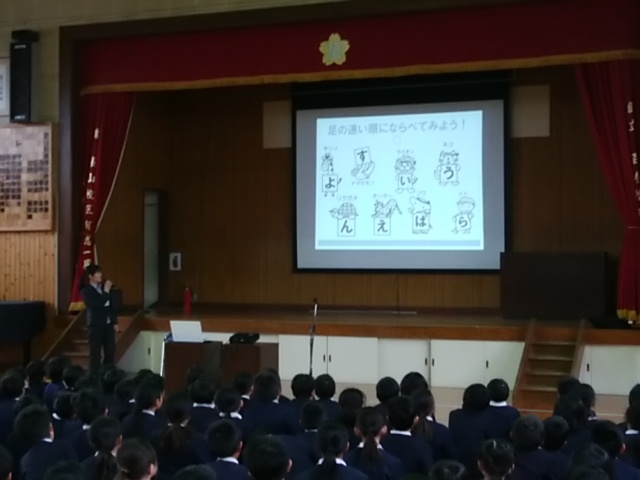 築山小学校では、1年4組で行われました。玉名市の各小中学校から多数の