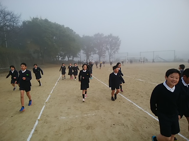 11月27日(月)朝から霧がかかる中、朝マラソンをがんばりました