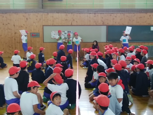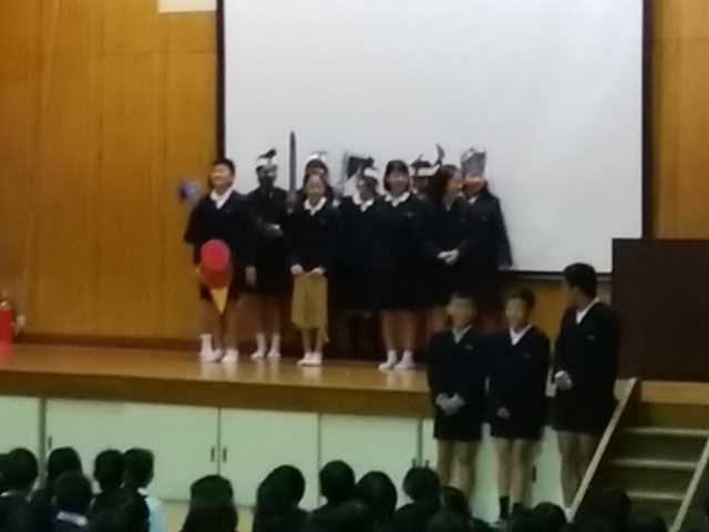11月17日(金)なかよし集会があり、給食委員会と生活委員会が発表しました。