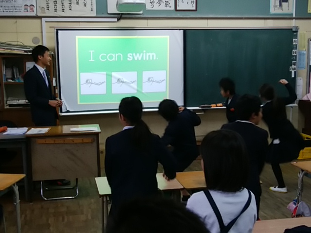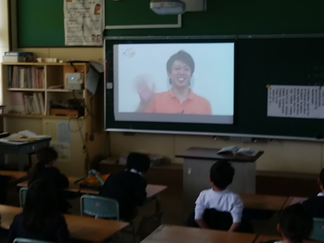 11月22日(水)朝のエンジョイイングリッシュで、3年生がDVDに合わせて動作を