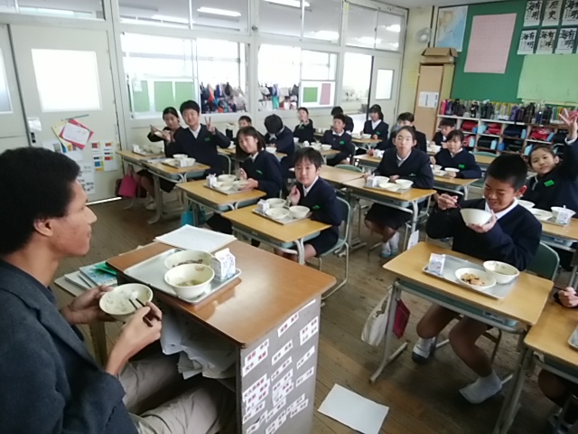 11月17日(金)ALTのコール先生の授業がありました。給食は6の2で楽しく食べました。