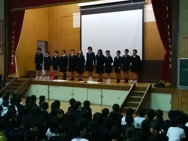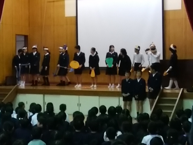 11月2日(木)音楽集会で4年生が発表しました。7日(火)に市民会館でブロック