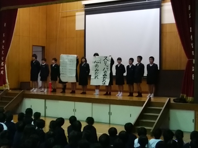 発表がありました。「スリッパの乱れは、心の乱れ」と全校児童に訴えました。