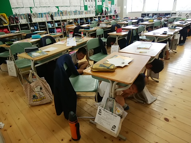 11月14日(火)全国一斉にJアラート訓練があり、築山小でも訓練をしました。
