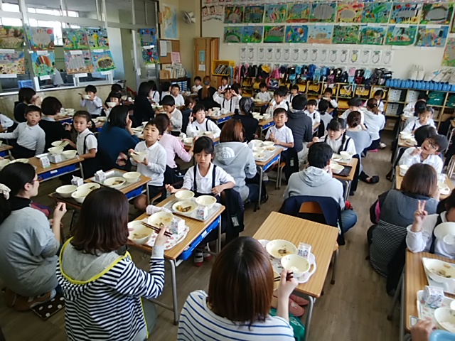 11月1日(水)1年生で親子給食がありました。仲良く楽しく給食を食べました。