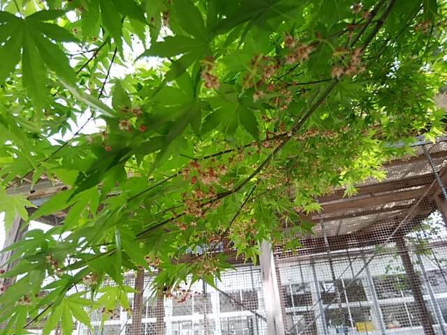 4月16日(月)飼育小屋横のモミジバフウの葉が茂ってきました。