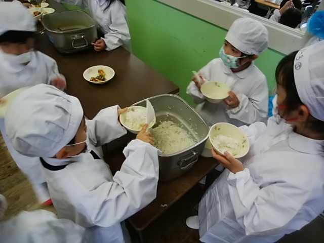 4月19日(木)1年生が、おいしそうに給食を食べていました。