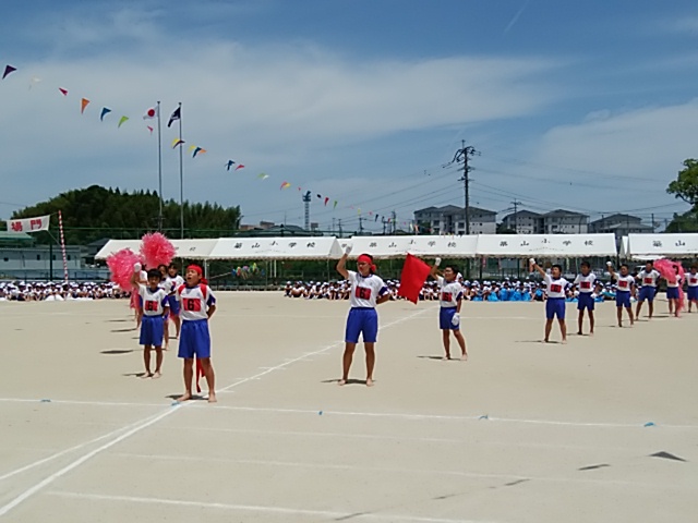 運動会 午前 投稿日時 : 2018/05/27 学校サイト管理者 ◆場所取り(くじ引き制)◆準備完了◆万顔旗◆開会式◆3年徒競走◆1年徒競走◆2年徒競走◆5年徒競走◆放送係◆決勝係◆6年徒競走◆1年リレー◆3年エイサー◆5年つなとり合戦◆2年大玉ころがし◆6年親子競技◆3年台風の目◆4年花棒おどり◆5,6年団体「騎馬戦」◆◆1、2年表現 やってみよう「ダンス」◆4年全員リレー◆築山音頭 {{options.likeCount}} {{options.likeCount}}