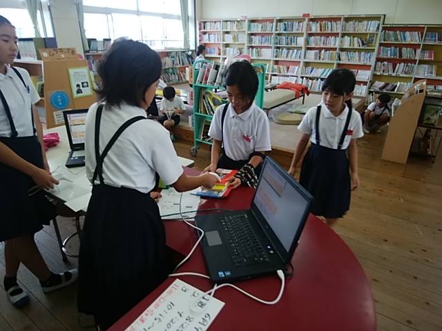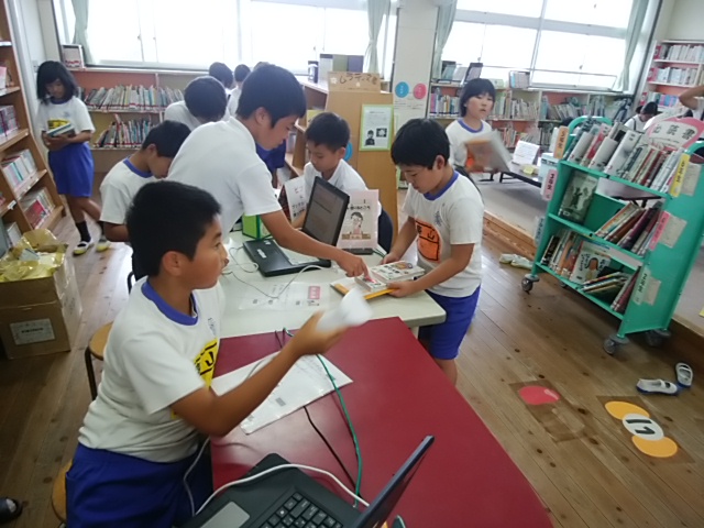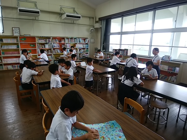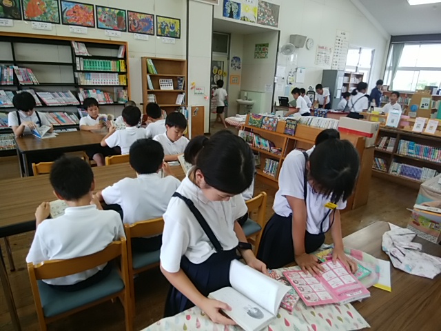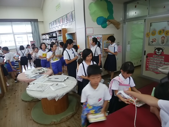 6月9日(土)朝から図書室で委員会の子どもが貸し出しをがんばっていました。