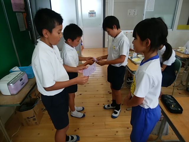 6月4日(月)昼休みに、体力調査の準備を体育委員会の子どもたちががんばっていました。