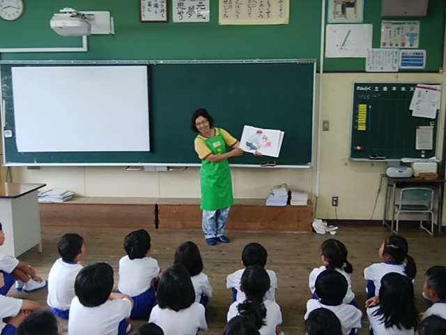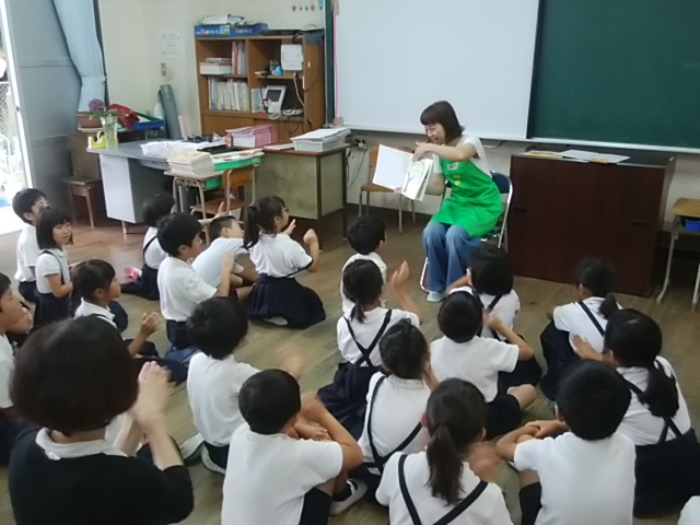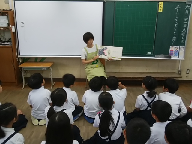 6月28日(木)朝から1年生で、読み聞かせがありました。