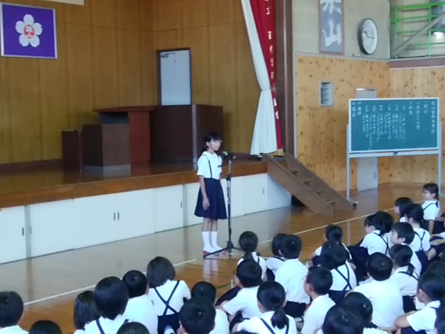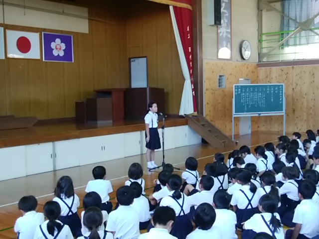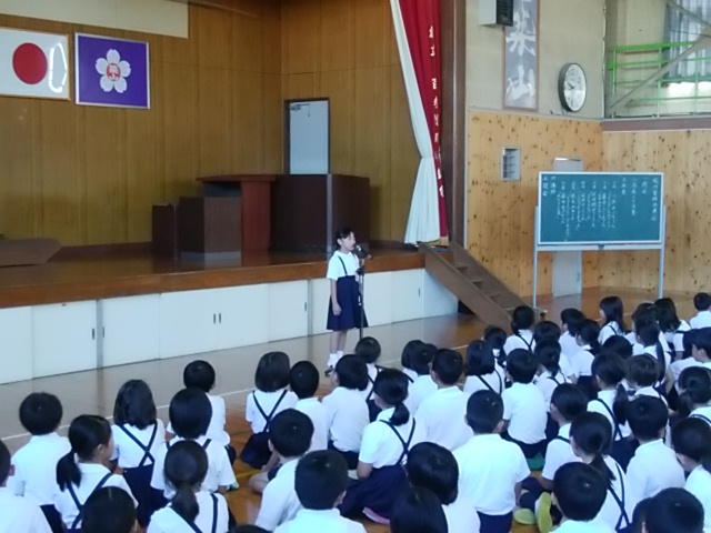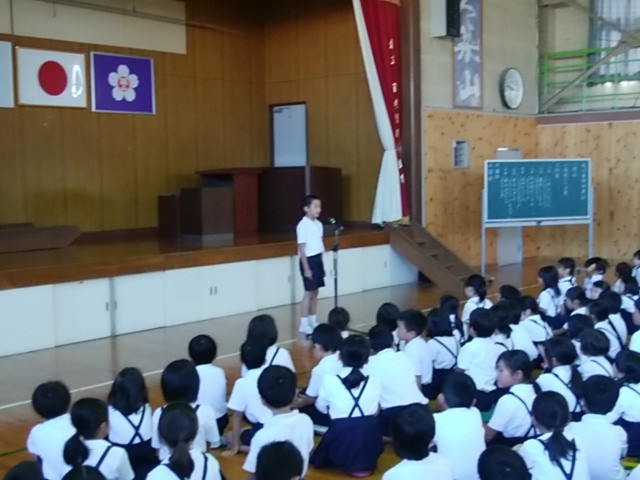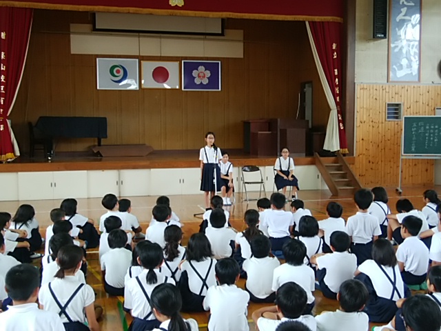 6月21日(木)業間になかよし集会があり、清掃美化委員会が発表しました。