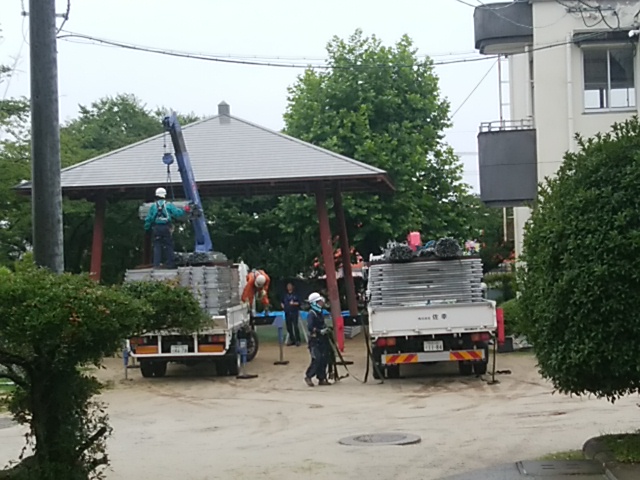 6月26日(火)外壁工事が始まり、昼間の相撲場方面への車の入場台数が