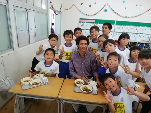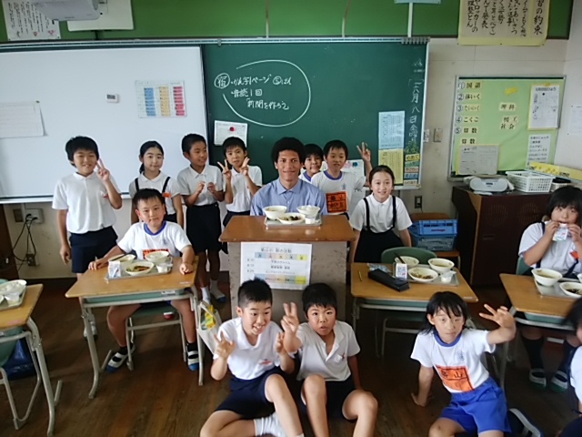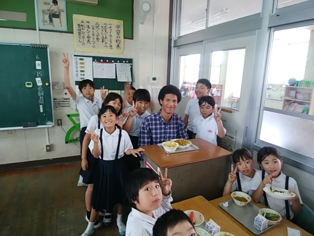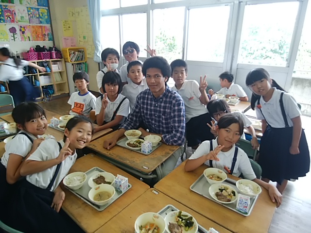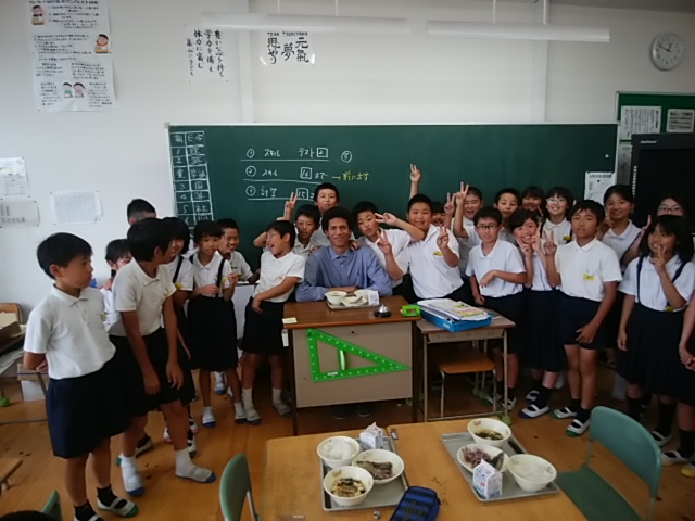 6月6日(水)ALTのコール先生が来校され、5の3で一緒に給食を食べました。