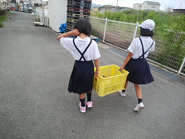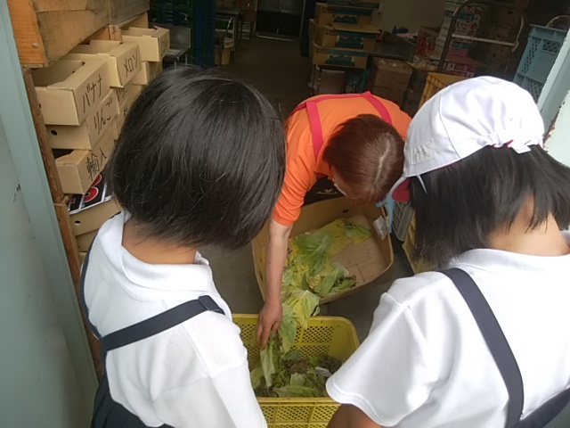 6月18日(月)飼育委員は、ウサギのえさをマルエイにもらいに行っています。
