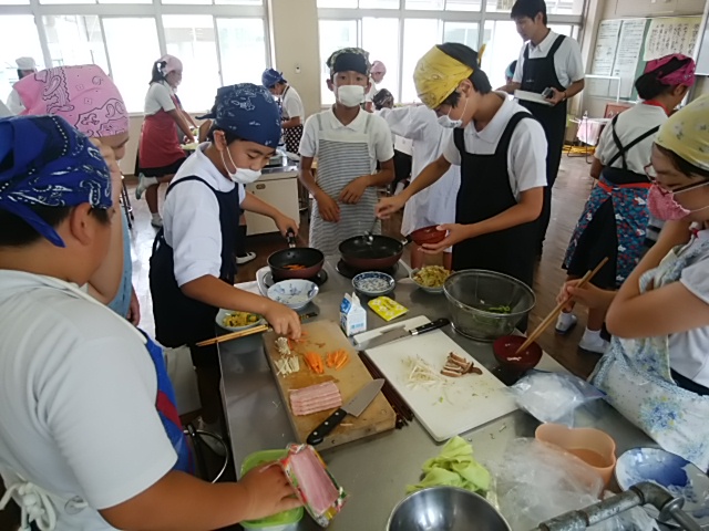 6月13日(水)6年生が、調理実習で野菜炒めなどを作りました。