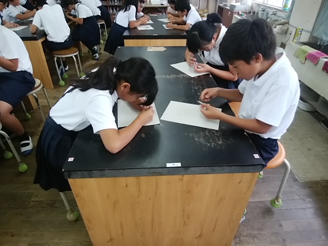 6月6日(水)6年生が理科の時間にいりこ(かたくちいわし)を使って消化管の観察をしました。