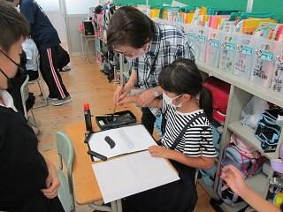 17日(金)にゲストティーチャーとして土井先生をお招きし、3年2組で習字の指導をしていただきました。みんな真剣な表情で取り組んでいました。よい作品が出来上がったと思います。
