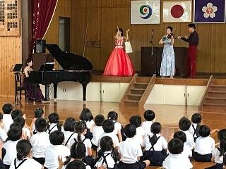 今日は、芸術鑑賞会でした。1年3年6年と2年4年5年の二部に分かれて行いました。「子犬のワルツ」「夜に駆ける」や「情熱大陸」等の素晴らしい音色に大きな拍手を送っていました。