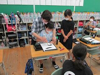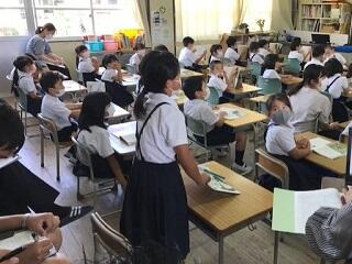 17日(金)にゲストティーチャーとして土井先生をお招きし、3年2組で習字の指導をしていただきました。みんな真剣な表情で取り組んでいました。よい作品が出来上がったと思います。