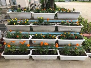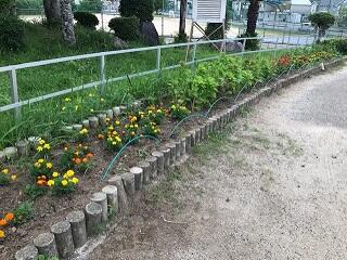 園芸委員が育てた花の苗が、プランターや各学年の花壇に植えられました。これから花いっぱいになっていきます。